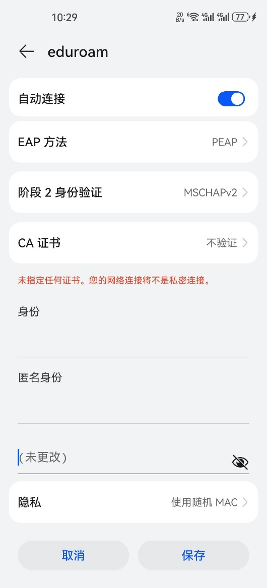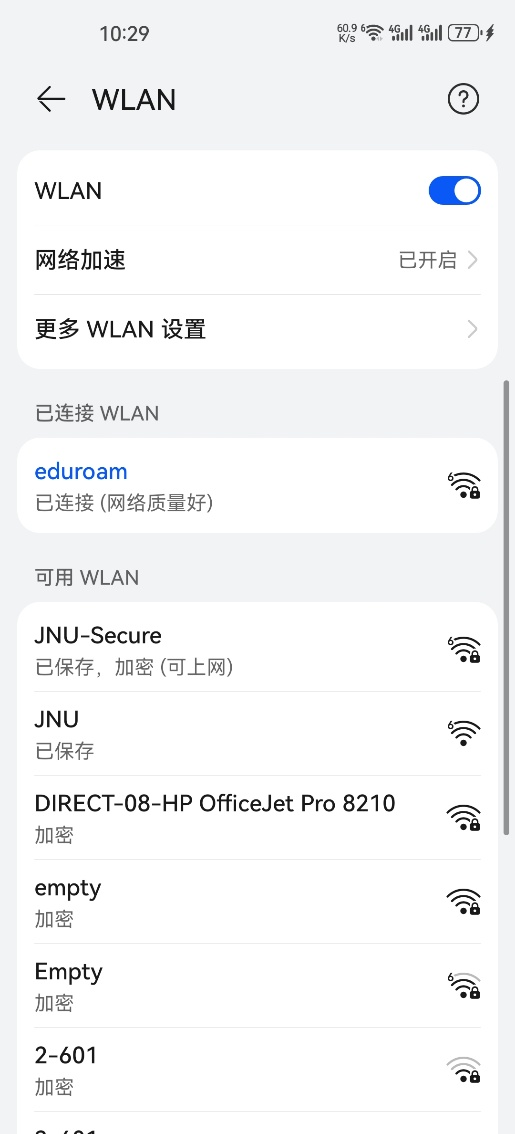 2.遵照国际惯例,eduroam为一种访客网络,仅供校外人员访问交流使用。